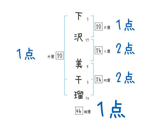 外運![]() | 下沢美千瑠さんの外運は20画の1つ星!社交が苦手。人とは違った才能があり波乱万丈な人生かも。 生活面を象徴する運勢です。外部から受ける影響力を表し、結婚運、家庭運や職場、環境への順応性を表します。 |