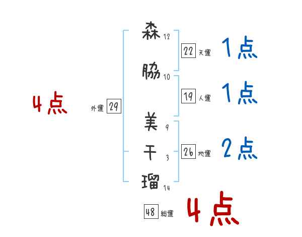 外運![]() | 森脇美千瑠さんの外運は29画の4つ星!完全主義で才能がある。厳格な心の持ち主。 生活面を象徴する運勢です。外部から受ける影響力を表し、結婚運、家庭運や職場、環境への順応性を表します。 |