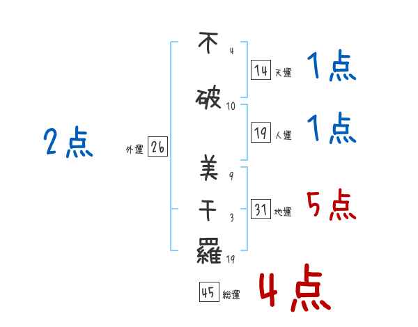 天運![]() | 不破美千羅さんの天運は14画の1つ星!人に対して優しいがストレスを溜め込みがち。人間関係のトラブルを避けるよう気をつけましょう。 家系が持つ宿命的な運勢を表します。祖先から受け継いだ苗字ですので自分の力が及びません。家柄を象徴します。 |