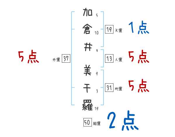 加倉井美千羅さんの画数の鑑定結果