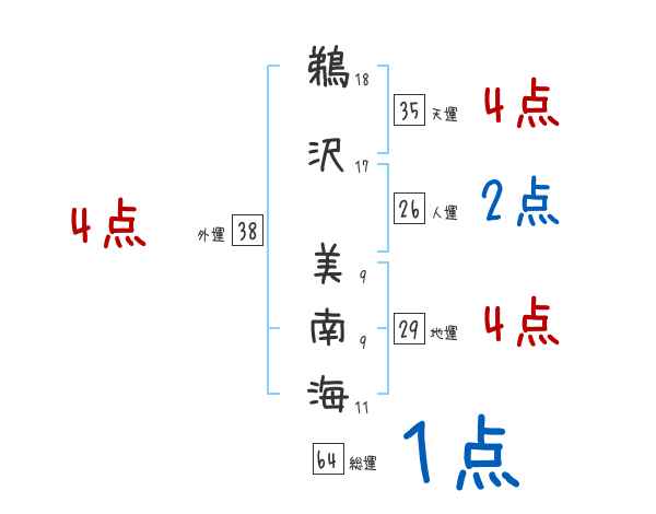 鵜沢美南海さんの画数の鑑定結果