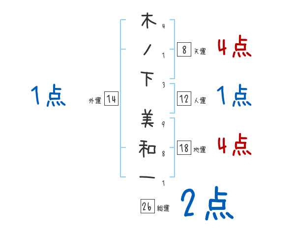 木ノ下美和一さんの画数の鑑定結果