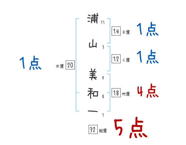 総運![]() | 浦山美和一さんの総運は32画の5つ星!柔軟性があり成功する。チャンスが多く金運が良い。 あなたの人生を表す1番重要な運勢です。生涯を通じて影響する総合運となり、主に50歳以降の晩年期に影響を及ぼします。 |
