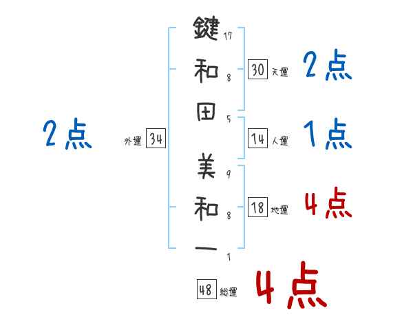 鍵和田美和一さんの画数の鑑定結果