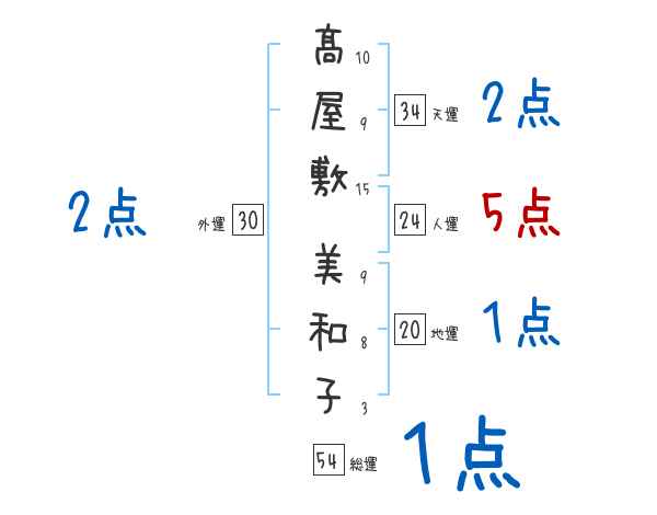 外運![]() | 髙屋敷美和子さんの外運は30画の2つ星!浮き沈みの激しさに注意しましょう。 生活面を象徴する運勢です。外部から受ける影響力を表し、結婚運、家庭運や職場、環境への順応性を表します。 |