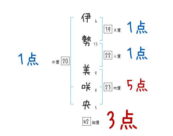 人運![]() | 伊勢美咲央さんの人運は22画の1つ星!努力することが苦手ないっぽう手先が器用。芸術性にも優れる。 性格や才能などを表す2番目に重要な運勢です。人間関係や協調性、社会的な成功に影響します。主に20歳から50歳ぐらいまでの中年期の運勢を表します。 |