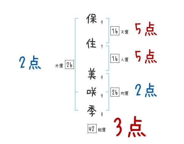 天運![]() | 保住美咲季さんの天運は16画の5つ星!人望が厚く大きく発展する。逆転成功が見える。 家系が持つ宿命的な運勢を表します。祖先から受け継いだ苗字ですので自分の力が及びません。家柄を象徴します。 |
