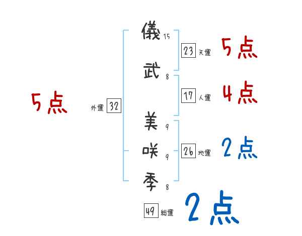 儀武美咲季さんの画数の鑑定結果