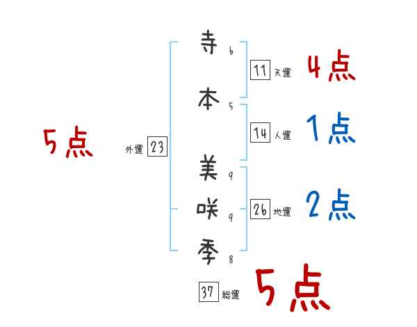 寺本美咲季さんの画数の鑑定結果