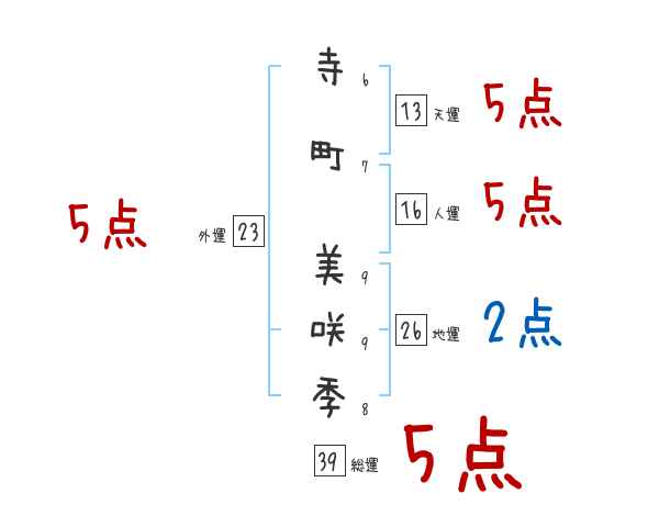 寺町美咲季さんの画数の鑑定結果