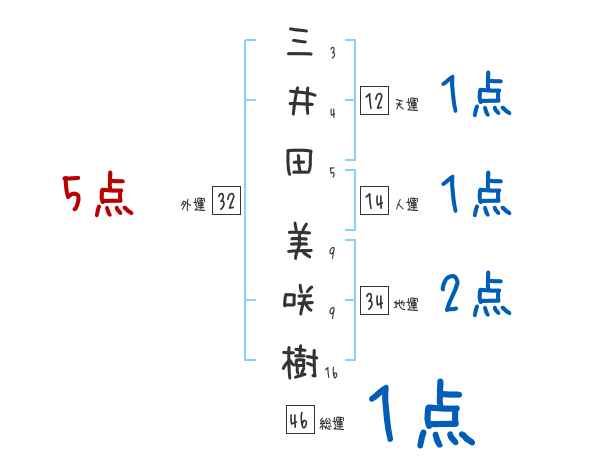 三井田美咲樹さんの画数の鑑定結果
