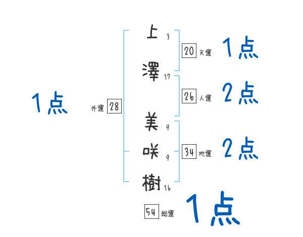 外運![]() | 上澤美咲樹さんの外運は28画の1つ星!家庭環境に注意。スポーツで活躍できる能力があるかも。 生活面を象徴する運勢です。外部から受ける影響力を表し、結婚運、家庭運や職場、環境への順応性を表します。 |