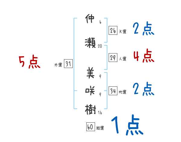 仲瀬美咲樹さんの画数の鑑定結果