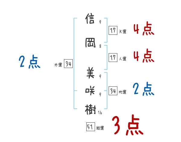 外運![]() | 信岡美咲樹さんの外運は34画の2つ星!独創性に優れるが、自尊心が強く災難に注意しましょう。 生活面を象徴する運勢です。外部から受ける影響力を表し、結婚運、家庭運や職場、環境への順応性を表します。 |