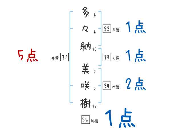 多々納美咲樹さんの画数の鑑定結果