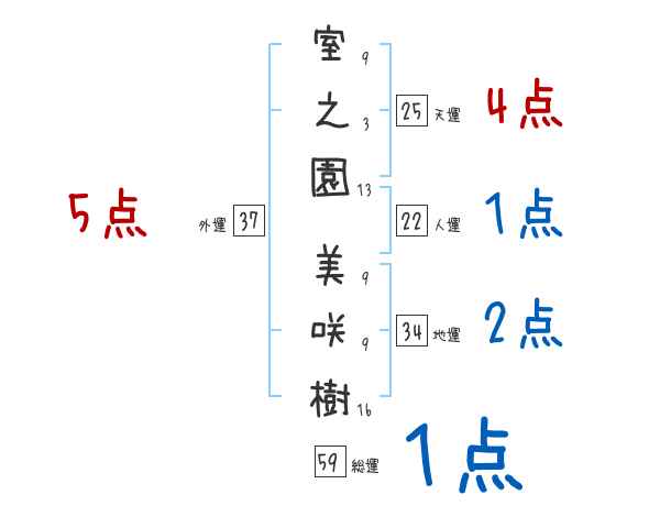 室之園美咲樹さんの画数の鑑定結果