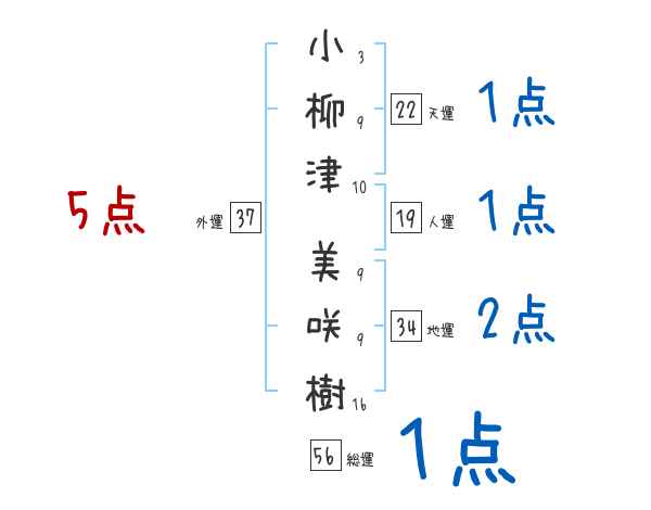 外運![]() | 小柳津美咲樹さんの外運は37画の5つ星!努力家で順応性に優れる。現実的な考え方ができ忠実に物事をこなす。 生活面を象徴する運勢です。外部から受ける影響力を表し、結婚運、家庭運や職場、環境への順応性を表します。 |