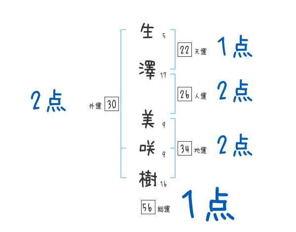 外運![]() | 生澤美咲樹さんの外運は30画の2つ星!浮き沈みの激しさに注意しましょう。 生活面を象徴する運勢です。外部から受ける影響力を表し、結婚運、家庭運や職場、環境への順応性を表します。 |