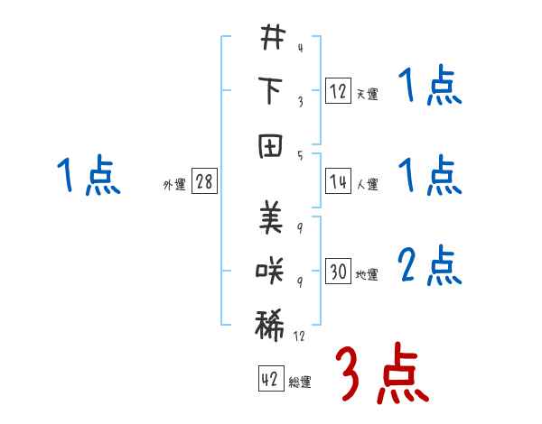 外運![]() | 井下田美咲稀さんの外運は28画の1つ星!家庭環境に注意。スポーツで活躍できる能力があるかも。 生活面を象徴する運勢です。外部から受ける影響力を表し、結婚運、家庭運や職場、環境への順応性を表します。 |
