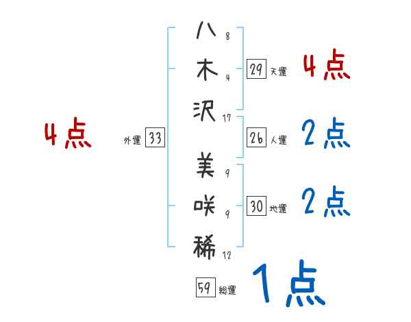 八木沢美咲稀さんの画数の鑑定結果