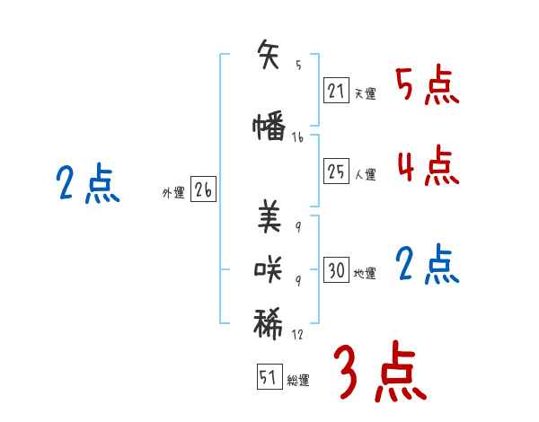 総運![]() | 矢幡美咲稀さんの総運は51画の3つ星!変化が激しく、危険に注意。堅実な性格。 あなたの人生を表す1番重要な運勢です。生涯を通じて影響する総合運となり、主に50歳以降の晩年期に影響を及ぼします。 |