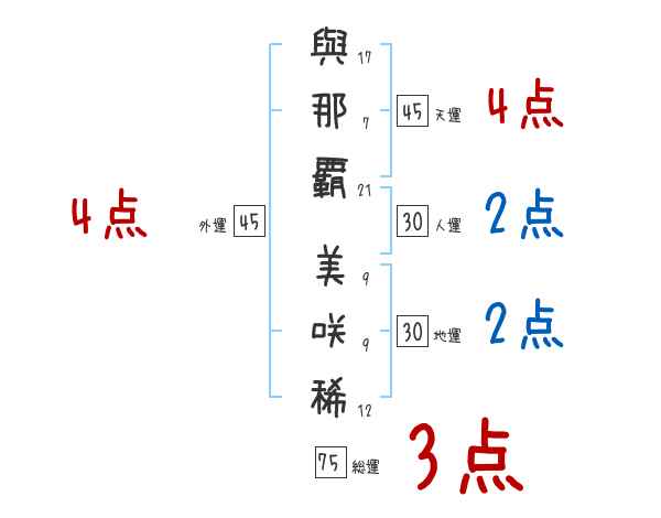 與那覇美咲稀さんの画数の鑑定結果