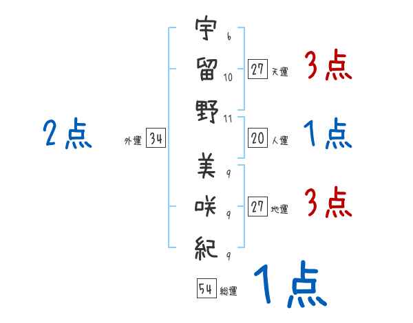 宇留野美咲紀さんの画数の鑑定結果