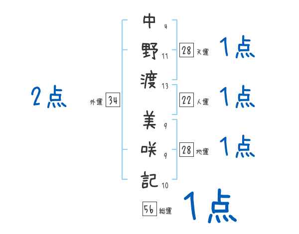 中野渡美咲記さんの画数の鑑定結果