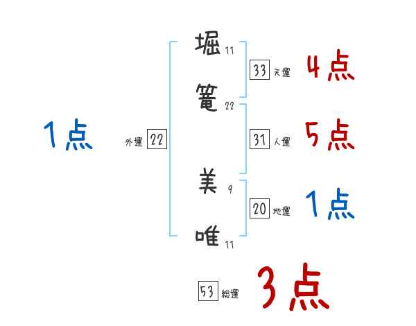 堀篭美唯さんの画数の鑑定結果