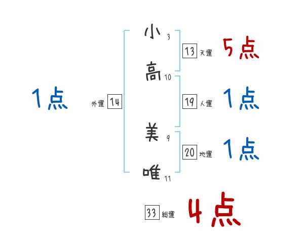 小高美唯さんの画数の鑑定結果