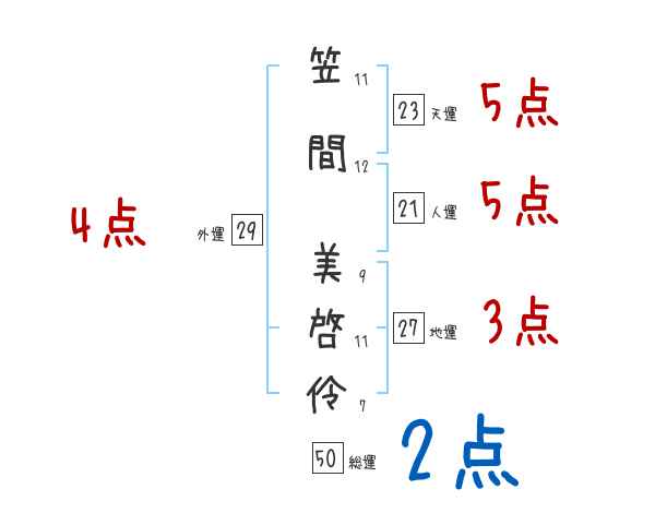 笠間美啓伶さんの画数の鑑定結果