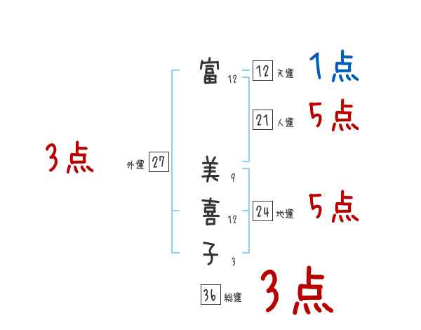 富美喜子さんの画数の鑑定結果