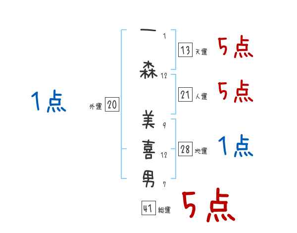 天運![]() | 一森美喜男さんの天運は13画の5つ星!才能に恵まれ人気がある。名声を手に入れる。円満な人生。 家系が持つ宿命的な運勢を表します。祖先から受け継いだ苗字ですので自分の力が及びません。家柄を象徴します。 |