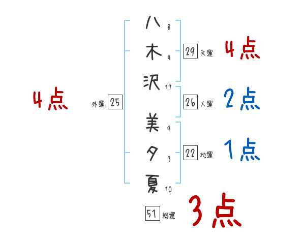 八木沢美夕夏さんの画数の鑑定結果