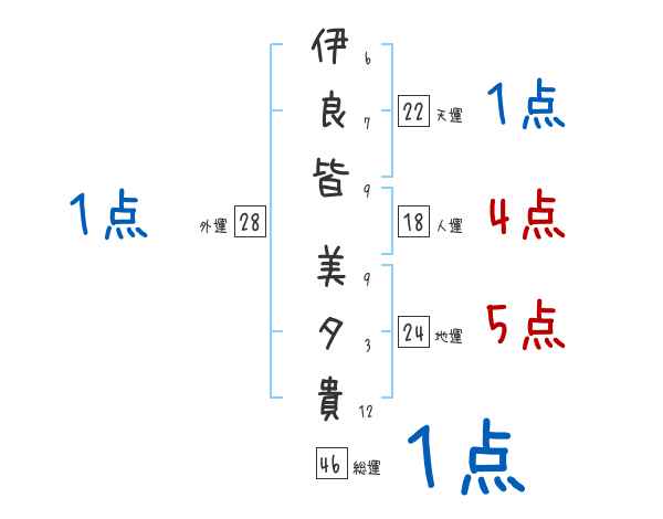 外運![]() | 伊良皆美夕貴さんの外運は28画の1つ星!家庭環境に注意。スポーツで活躍できる能力があるかも。 生活面を象徴する運勢です。外部から受ける影響力を表し、結婚運、家庭運や職場、環境への順応性を表します。 |