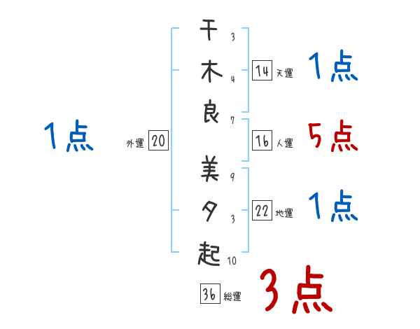 総運![]() | 千木良美夕起さんの総運は36画の3つ星!先見性が豊かです。多少神経質で苦労することも。 あなたの人生を表す1番重要な運勢です。生涯を通じて影響する総合運となり、主に50歳以降の晩年期に影響を及ぼします。 |