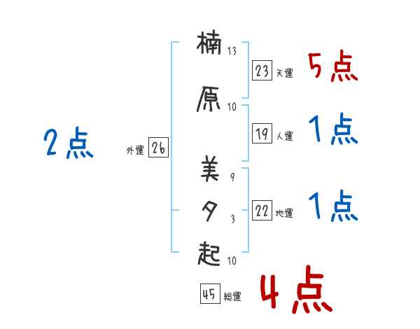 楠原美夕起さんの画数の鑑定結果