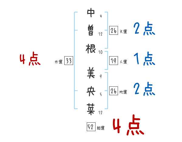 中曽根美央菜さんの画数の鑑定結果