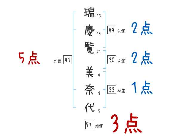 瑞慶覧美奈代さんの画数の鑑定結果