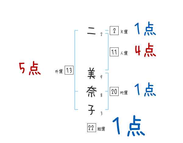 二美奈子さんの画数の鑑定結果