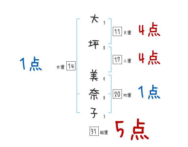 外運![]() | 大坪美奈子さんの外運は14画の1つ星!人に対して優しいがストレスを溜め込みがち。人間関係のトラブルを避けるよう気をつけましょう。 生活面を象徴する運勢です。外部から受ける影響力を表し、結婚運、家庭運や職場、環境への順応性を表します。 |