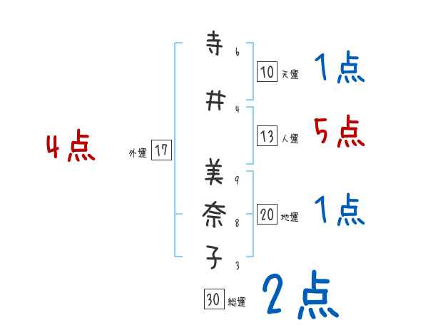 外運![]() | 寺井美奈子さんの外運は17画の4つ星!積極的な行動力。地位を気づき財産を手に入れる。純粋な心と直感力。 生活面を象徴する運勢です。外部から受ける影響力を表し、結婚運、家庭運や職場、環境への順応性を表します。 |