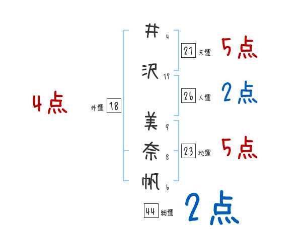 井沢美奈帆さんの画数の鑑定結果