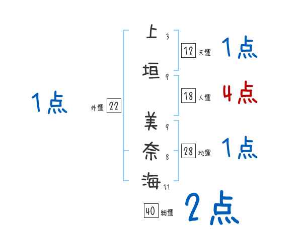 上垣美奈海さんの画数の鑑定結果