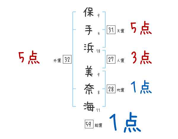 保手浜美奈海さんの画数の鑑定結果
