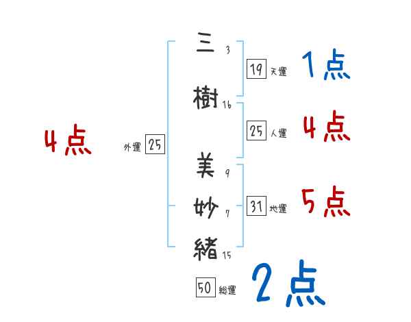 天運![]() | 三樹美妙緒さんの天運は19画の1つ星!優れた才能を持ちますが、協調性が足りないことも。周りの人と協力する事を意識しましょう。 家系が持つ宿命的な運勢を表します。祖先から受け継いだ苗字ですので自分の力が及びません。家柄を象徴します。 |