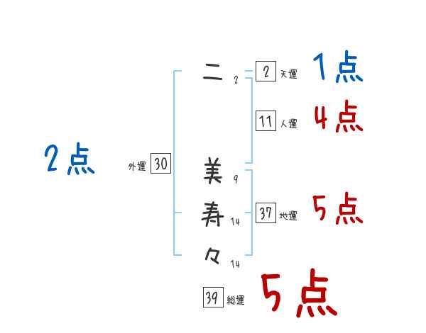 二美寿々さんの画数の鑑定結果