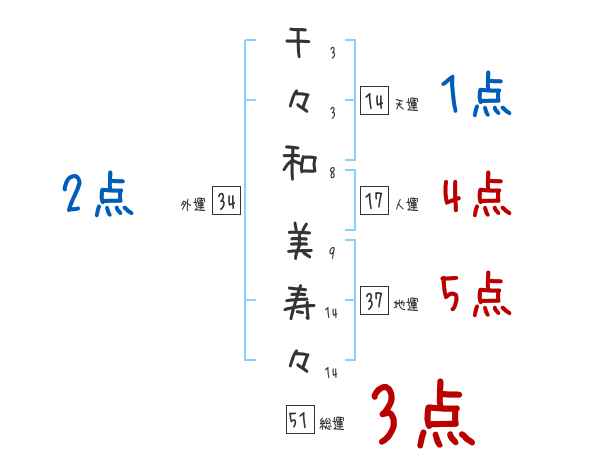 天運![]() | 千々和美寿々さんの天運は14画の1つ星!人に対して優しいがストレスを溜め込みがち。人間関係のトラブルを避けるよう気をつけましょう。 家系が持つ宿命的な運勢を表します。祖先から受け継いだ苗字ですので自分の力が及びません。家柄を象徴します。 |