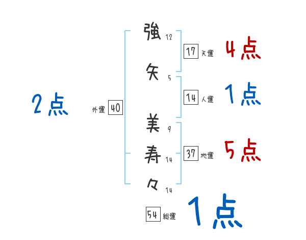 天運![]() | 強矢美寿々さんの天運は17画の4つ星!積極的な行動力。地位を気づき財産を手に入れる。純粋な心と直感力。 家系が持つ宿命的な運勢を表します。祖先から受け継いだ苗字ですので自分の力が及びません。家柄を象徴します。 |