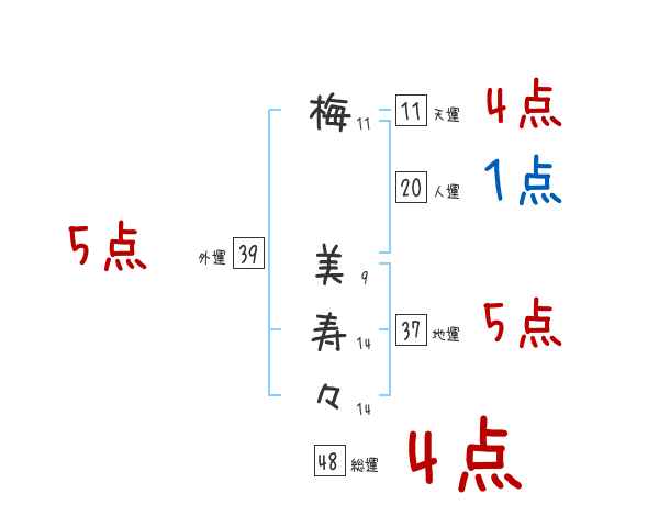 梅美寿々さんの画数の鑑定結果